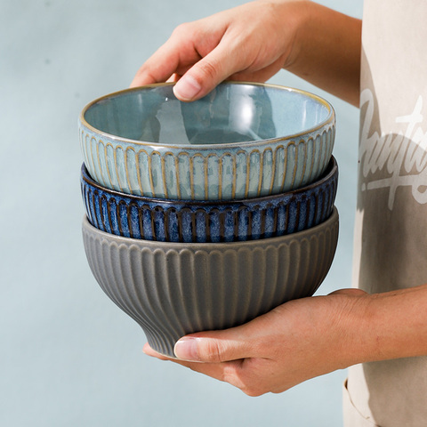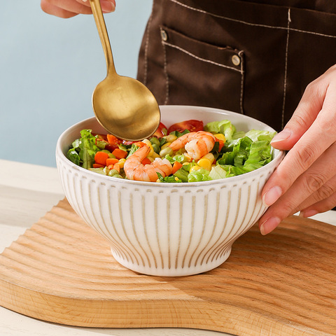セラミックボウル卸売ホームレストラン食器カスタムカラフルラウンドストライプフルーツサラダ