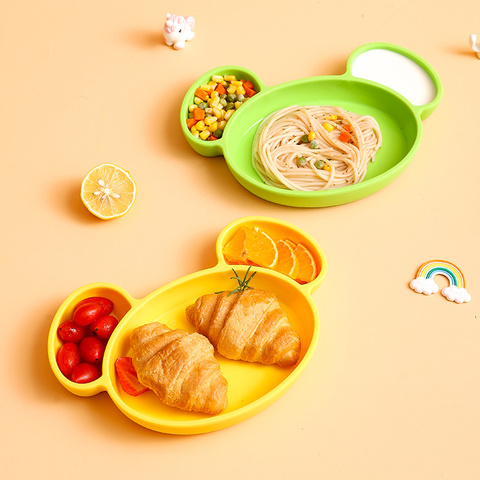 カスタムカラークリエイティブデザイン動物の形ホームベビーシリコン分割プレートキッズ漫画ディナープレート赤ちゃん用