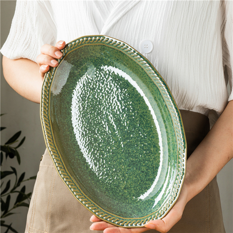 レストラン食器手作りケータリングデザートプレート北欧の楕円形セラミックプレート
