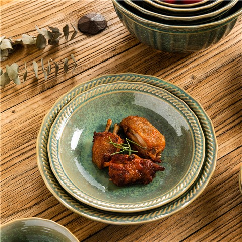 セラミックボウルモダン家庭用食器丸型エンボスグリーンフルーツ